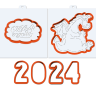 Stencils + cookies cutter for gingerbread, cookies, cake, scrapbooking, decor: «Cookie cutter and stencil set Dragon 2024», includes 7 items: stencils and cookie cutters.