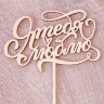 Топпер из фанеры 4 мм. Длина надписи 18 см, высота с ножкой 23,6 см.