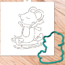 Трафарет+форма для пряника, печенья, торта, скрапбукинга, декора: «Мышка в санях №2» в комплекте 2 изделия: трафарет и форма (вырубка, каттер).