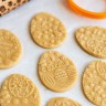 - После этого вам нужно раскатать тесто с помощью скалки с узором и придать форму печенью, для этого Вы можете использовать формочки для печенья или вырубки от lubimova.com.